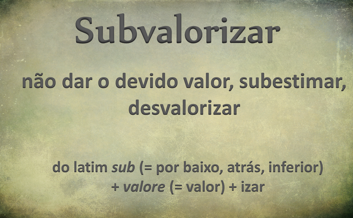 Do latim sub (= por baixo, atrás, inferior) + valore (= valor) + izar