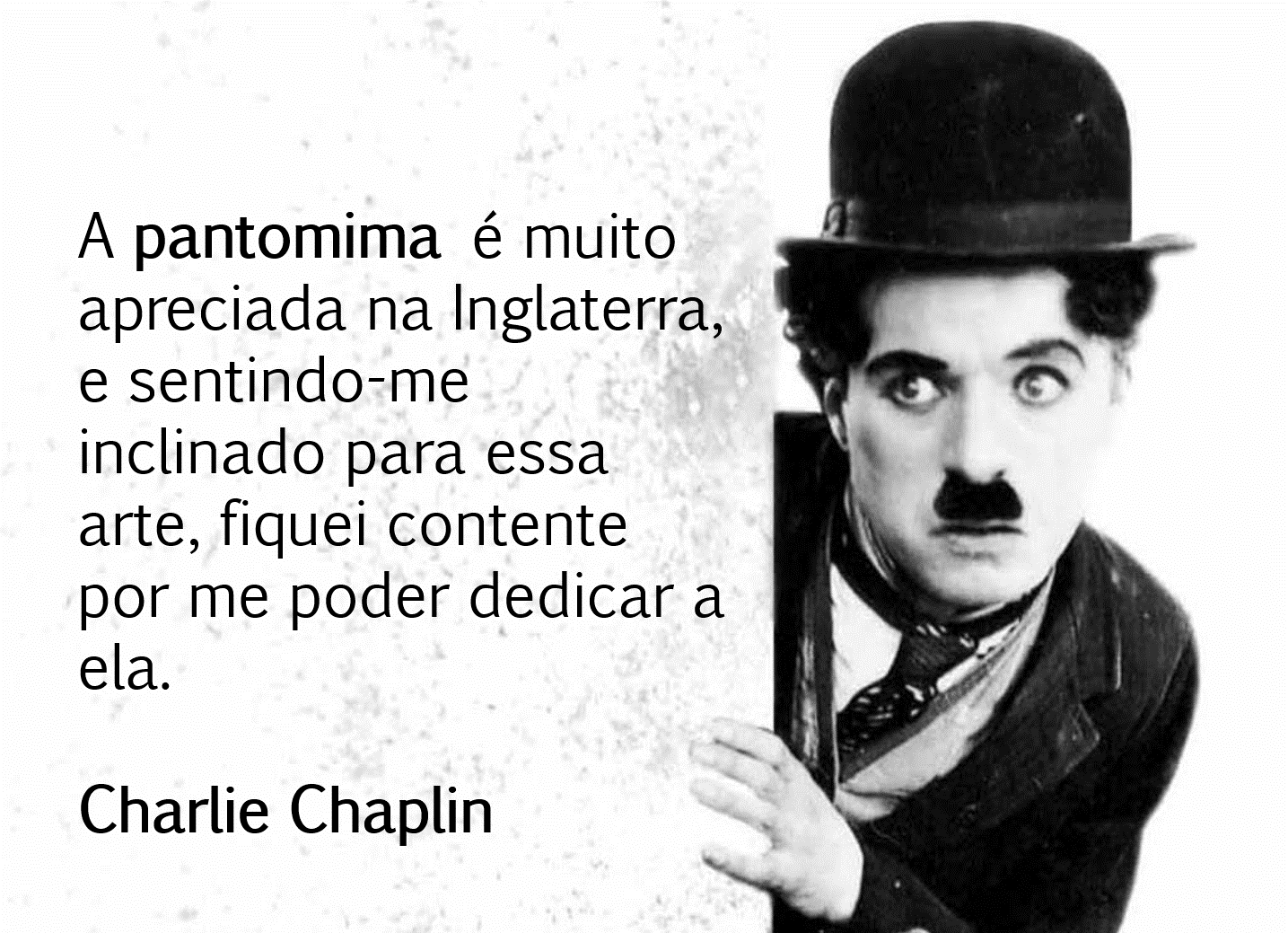 “A pantomima é muito apreciada na Inglaterra, e sentindo-me inclinado para essa arte, fiquei contente por me poder dedicar a ela.” Charlie Chaplin