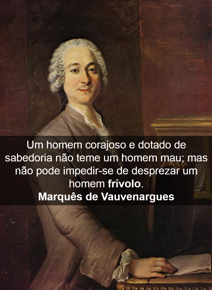 “Um homem corajoso e dotado de sabedoria não teme um homem mau; mas não pode impedir-se de desprezar um homem frívolo.” Marquês de Vauvenargues